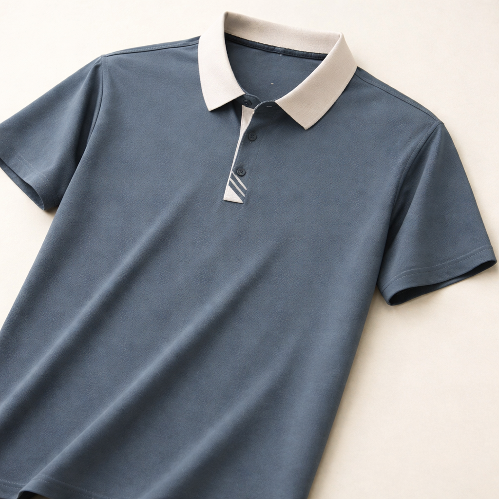 - Ribbed Contrast Collar & Button Placket – Adds a sophisticated edge to the classic polo design.